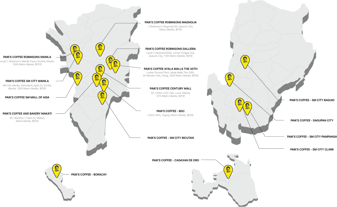 글로벌 더본 PHILPPNES Paik’s Coffee 지점 현황